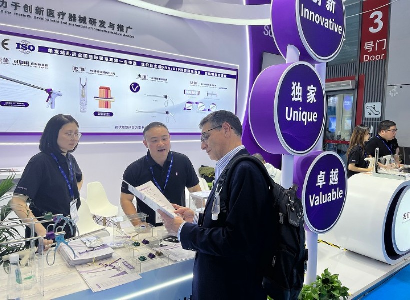 圣石同期展示的独创产品又一次聚焦了众人目光。全球首创捷加?一次性使用连发结扎夹及配套捷施?连发施夹钳,其独特的可重复使用连发钳专利设计,以及“2-6枚的连发夹灵活选装”专利技术不仅降低耗材使用成本,更通过流畅的操控性适配腔镜复杂场景需求。圣石与浙大邵逸夫医院联合研制,可应用于肠道吻合与转流的创新产品蔡式支架?“可崩解肠道吻合器”使此项全球创新术式配套产品具有吻合时间短、无永久残留异物、不破坏吻合口粘膜下血管,并能预防吻合口漏、可避免人工肛门及二次手术、治疗周期缩短、减少患者生理心理创伤等多项临床优势。